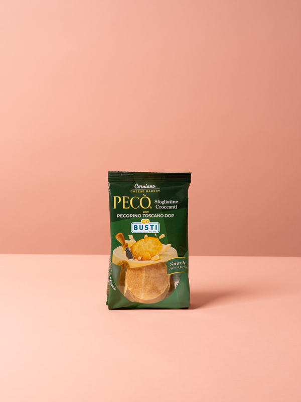 Pecò’s crispy puff pastries with Pecorino Toscano DOP offer a unique taste experience. The light, golden pastry blends with the rich, intense flavor of Pecorino Toscano DOP, creating a perfect balance of crunchiness and creaminess. Ideal as a snack or aperitif, they’re a simple yet refined delight.